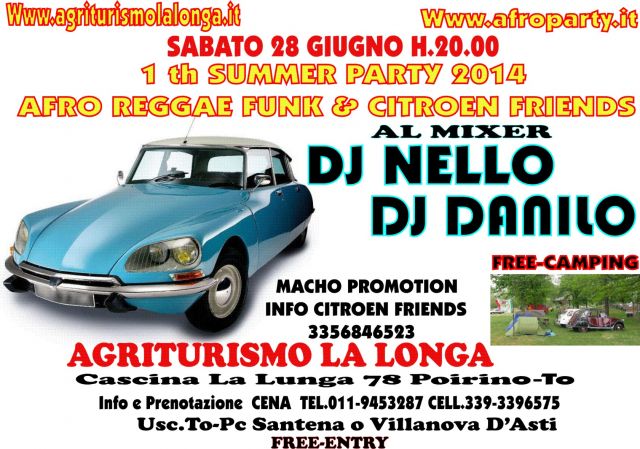 1 th SUMMER PARTY 2014 AFRO REGGAE FUNK & CITROEN FRIENDS SABATO 28/6 DJ NELLO DJ DANILO & MACHO