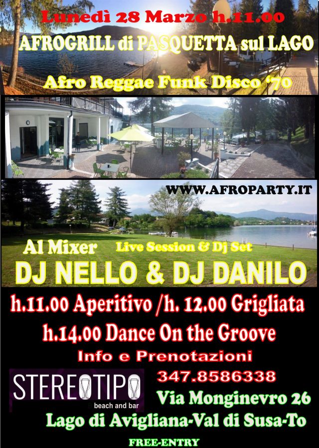 AFROGRILL di PASQUETTA sul LAGO di AVIGLIANA Lunedì 28 Marzo h11.00 Live Session & DJ NELLO DJ DANI