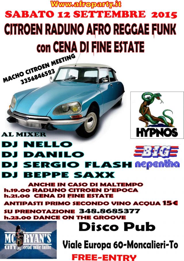 CITROEN RADUNO AFRO REGGAE FUNKY con CENA di FINE ESTATE SAB 12/9 DJ SERGIO FLASH DJ NELLO DJ BEPPE