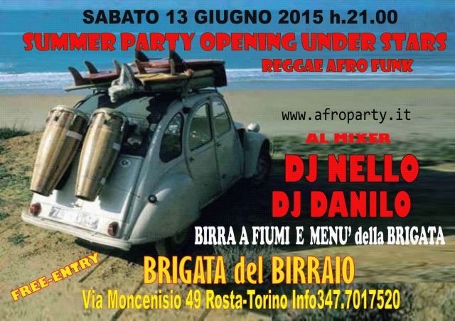 QUESTO SABATO 13 GIUGNO h.21.00 SUMMER PARTY UNDER STARS 2015 DJ NELLO DJ DANILO AFRO REGGAE FUNK O