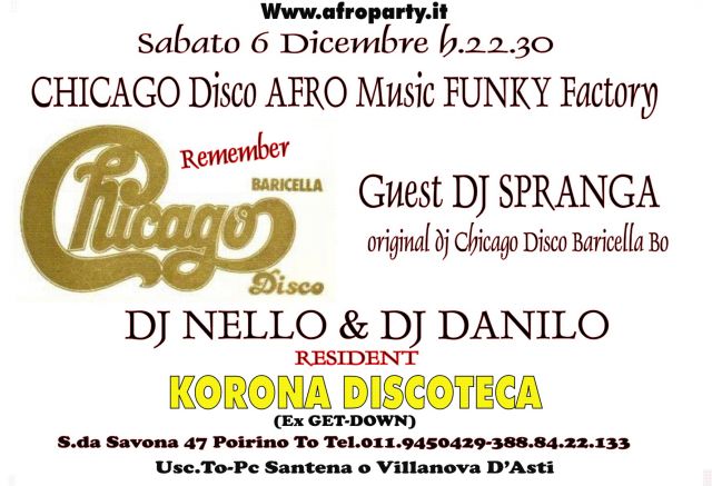 Remember CHICAGO Disco AFRO Music FUNKY Factory Guest DJ SPRANGA Resident DJ NELLO DJ DANILO SABATO