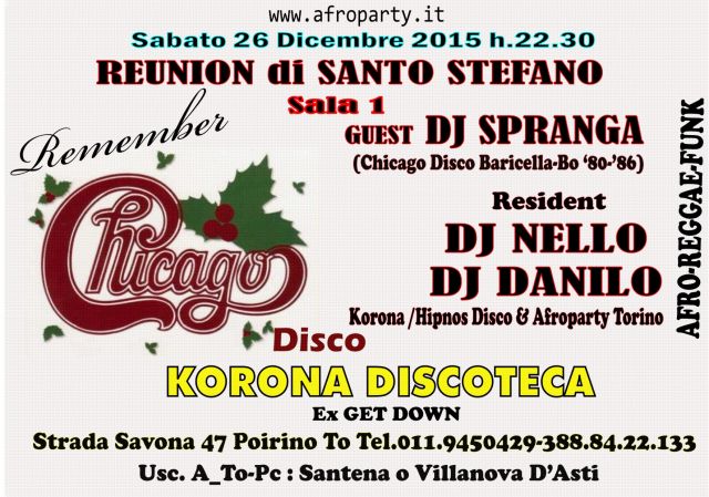 SANTO STEFANO REUNION FUNKY AFRO Guest DJ SPRANGA Remember Chicago Resident DJ NELLO DJ DANILO 26/1