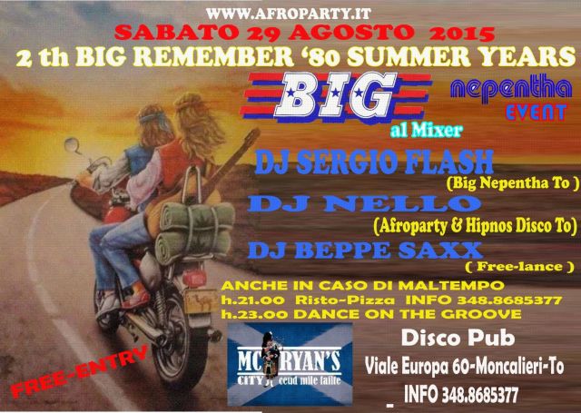 2 th BIG REMEMBER '80 SUMMER YEARS SABATO 29 AGOSTO DJ SERGIO FLASH DJ NELLO DJ BEPPE SAXX @ MC RYAN