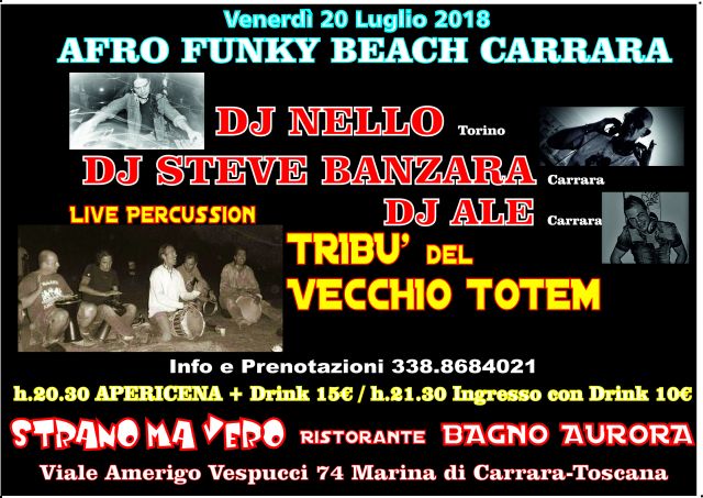 Afro Funky BEACH Ven 20/7 Strano ma VERO Marina di Carrara