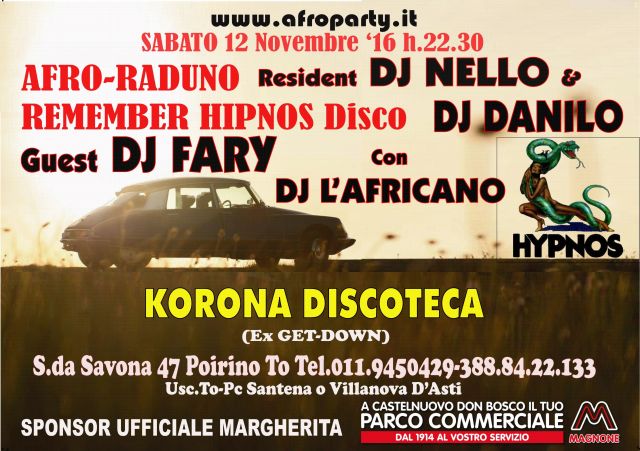 AFRO Raduno Remember Hipnos Guest DJ FARY SAB 12/11 KORONA Disco