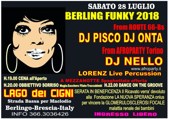 Appuntamento con la solidarietà che già da diversi anni si materializza in quel di Berlingo-Brescia presso il Lago dei Cigni luogo in cui la Musica Funky diventa anello di giunzione tra la ricerca e la raccolta fondi affinchè possa aiutare a combattere una malattia renale rara dei bambini La Glomerulosclerosi focale