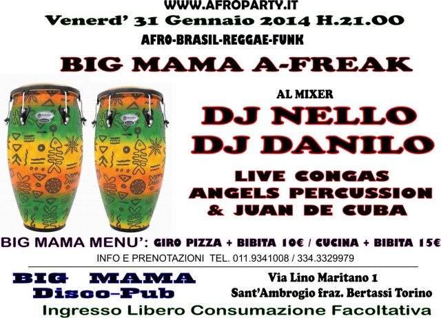 BIG MAMA A-FREAK DJ NELLO & DJ DANILO LIVE CONGAS ANGELS PERCUSSION & JUAN DE CUBA 31/1 BIG MAMA Dis
