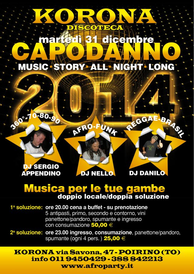 CAPODANNO 2014 MUSIC STORY ALL NIGHT LONG DJ NELLO DJ DANILO DJ SERGIO APPENDINO DISCOTECA KORONA Po