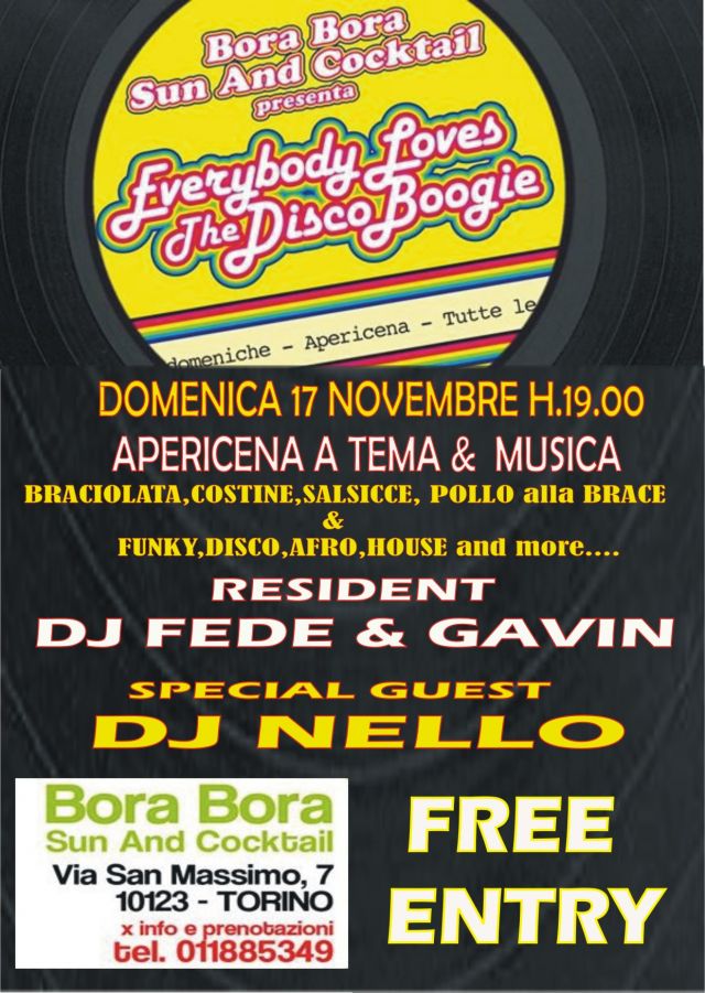 DOMENICA 17 NOVEMBRE "EVERYBODY LOVES THE DISCO BOOGIE" @ BORA BORA SUN AND COCKTAIL