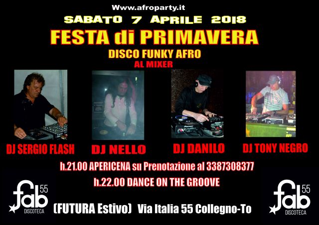 FESTA di Primavera Sab 7/4 DiscoFunkyAfro FAB 55 CollegnoTo
