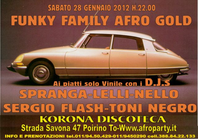 FUNKY FAMILY AFRO GOLD con D.J.s SPRANGA & LELLI al KORONA Disco di Poirino