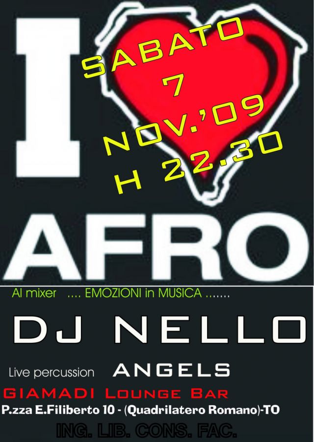La Musica Afro di Nuova Generazione esplode nel salotto torinese ...il Giamadi' al centro del Quadrilatero Romano, unico locale dove si puo' ballare, ospita il duo dj e percussionista dell'Afroparty nelle loro performace ..... Afro Style New Generation .....