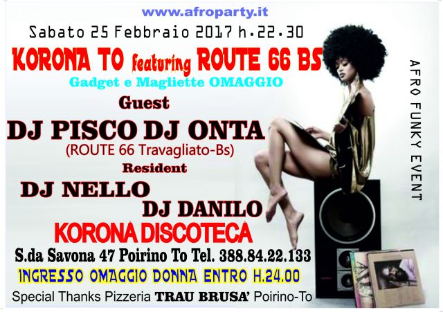 Korona Disco di Poirino-To in collaborazione con il ROUTE 66 di Travagliato-Bs