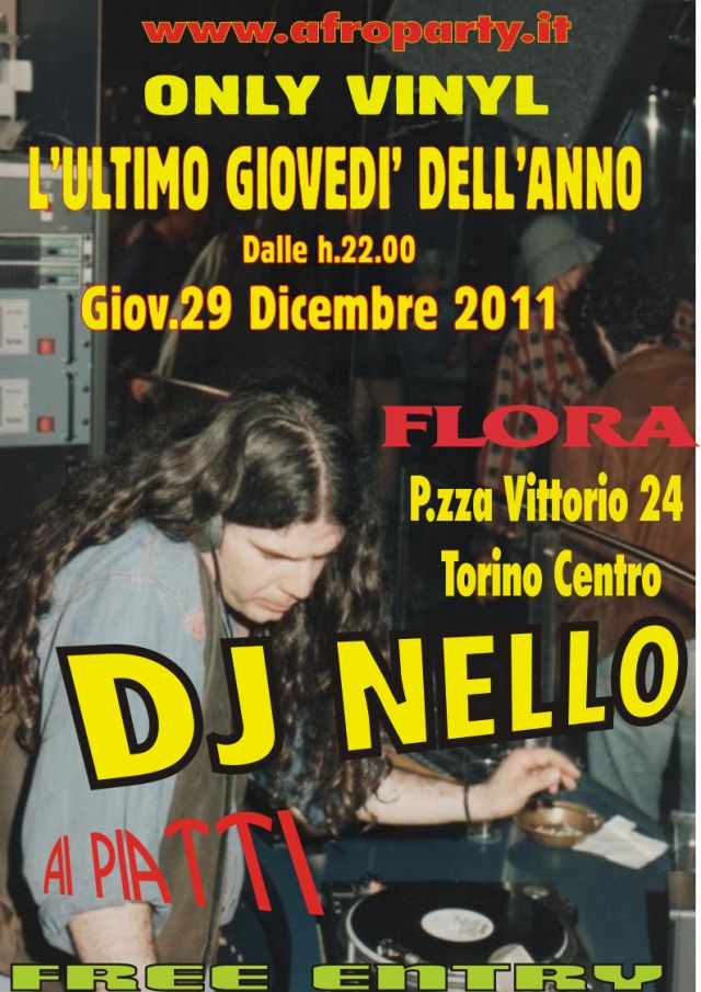 ....volge al termine il 2011 e dopo le frenetiche corse agli acquisti di Natale ci concediamo un drink prima di Capodanno ..per l'Ultimo Giovedi' dell'Anno dall h.22.00 con Dj Nello On The Mix Only Vinil per i palati piu' esigenti Afro Brasil Funky Disco Reggae al FLORA in pieno centro cittadino....VI ASPETTO!!!!!....