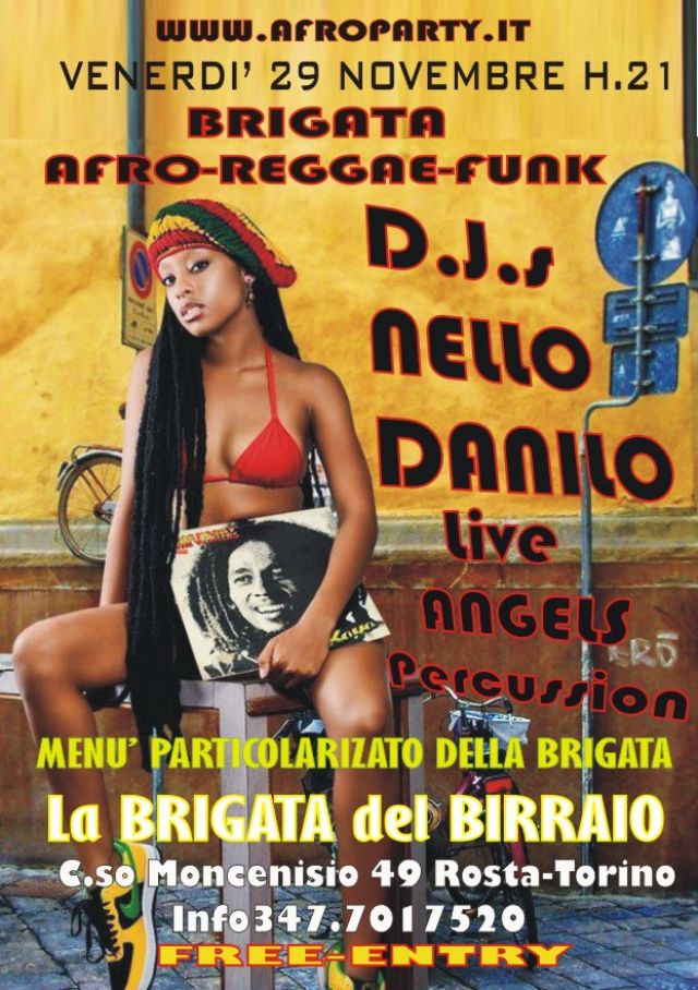 LA BRIGATA AFRO-REGGAE-FUNK DJ NELLO DJ DANILO LIVE ANGELS PERCUSSION 29/11 ROSTA-TO