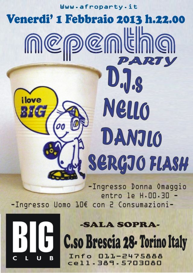 NEPENTHA PARTY al BIG CLUB (Sala Sopra )C.so Brescia 28 Torino con DJ.s SERGIO FLASH NELLO & DANILO