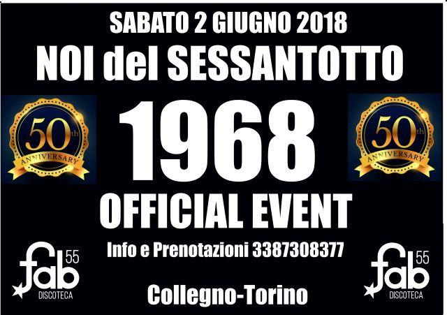 NOI del '68 Sab 2/6/18 Official EVENT DISCO FAB 55 Collegno-To