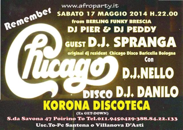 Remember CHICAGO Disco Sabato 17/5 Guest DJ SPRANGA con PIER & PEDDY DJ.s from BERLING-FUNKY BRESCI