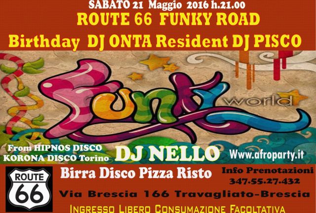 ROUTE 66 FUNKY ROAD Birthday DJ ONTA Resident DJ PISCO Guest DJ NELLO