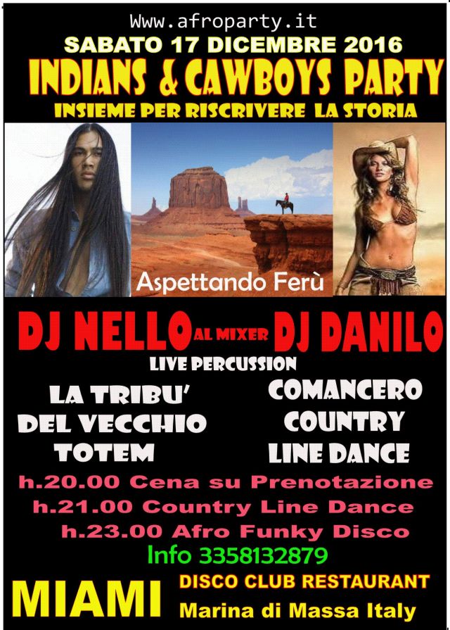 Sabato 17 Dicembre Indians & Cawboys DJ Nello DJ Danilo Disco MIAMI Marina di Massa