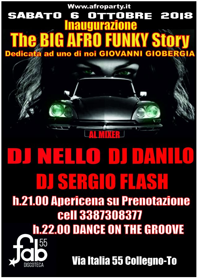 The BIG Afro Funky STORY Inaug. Sab 6/10 Disco FAB 55 Collegno