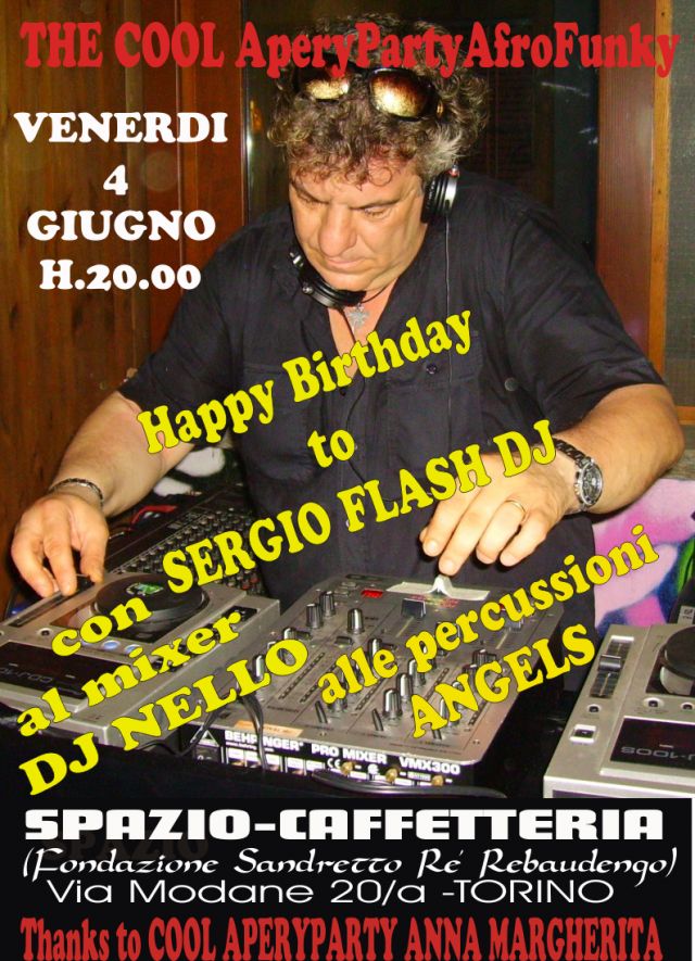 h.20.00__AperyPartyAfroFunky&Happy Birthday to SERGIO dj FLASH con al mixaer DJ NELLO e alle percussioni ANGELS